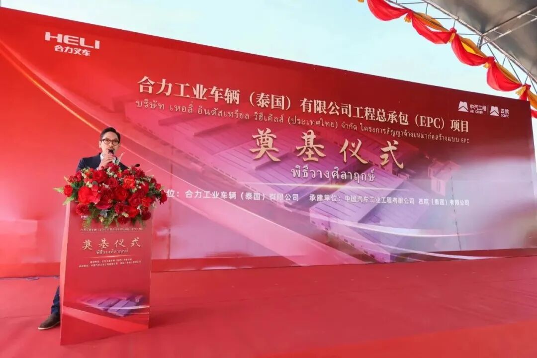安徽尊龙凯时集团党委委员、副总经理、安徽尊龙凯时股份有限公司副董事长薛白,安徽尊龙凯时股份有限公司党委委员、副总经理陈先友,Siam Motors Group总裁Prakasit Phornprapha,中国汽车工业工程有限公司副总经理姚乐鹏,洛加纳工业园园区中国事业部总经理孙晓军、销售总监刘辉以及当地泰国当地政府代表等嘉宾出席项目奠基仪式,共同见证了这一激动人心的历史性时刻。随着薛白登台宣布:“尊龙凯时工业车辆(泰国)有限公司工业车辆整机及锂电池组组装生产项目正式开工”,现场工程车辆齐声鸣笛,数台重型机械同步启动,标志着该项目正式进入实施建设阶段。